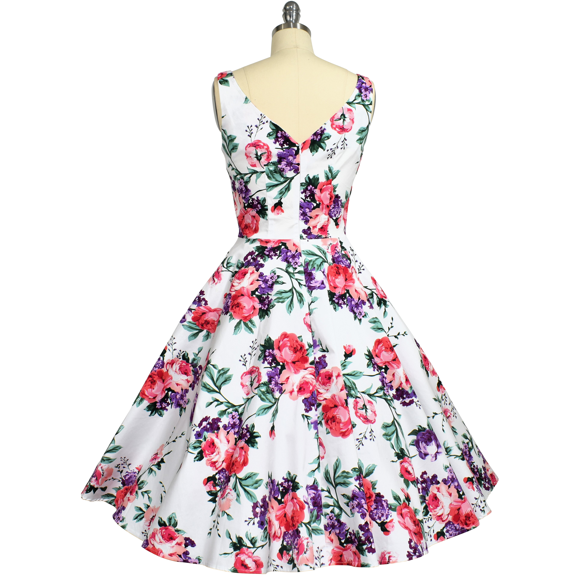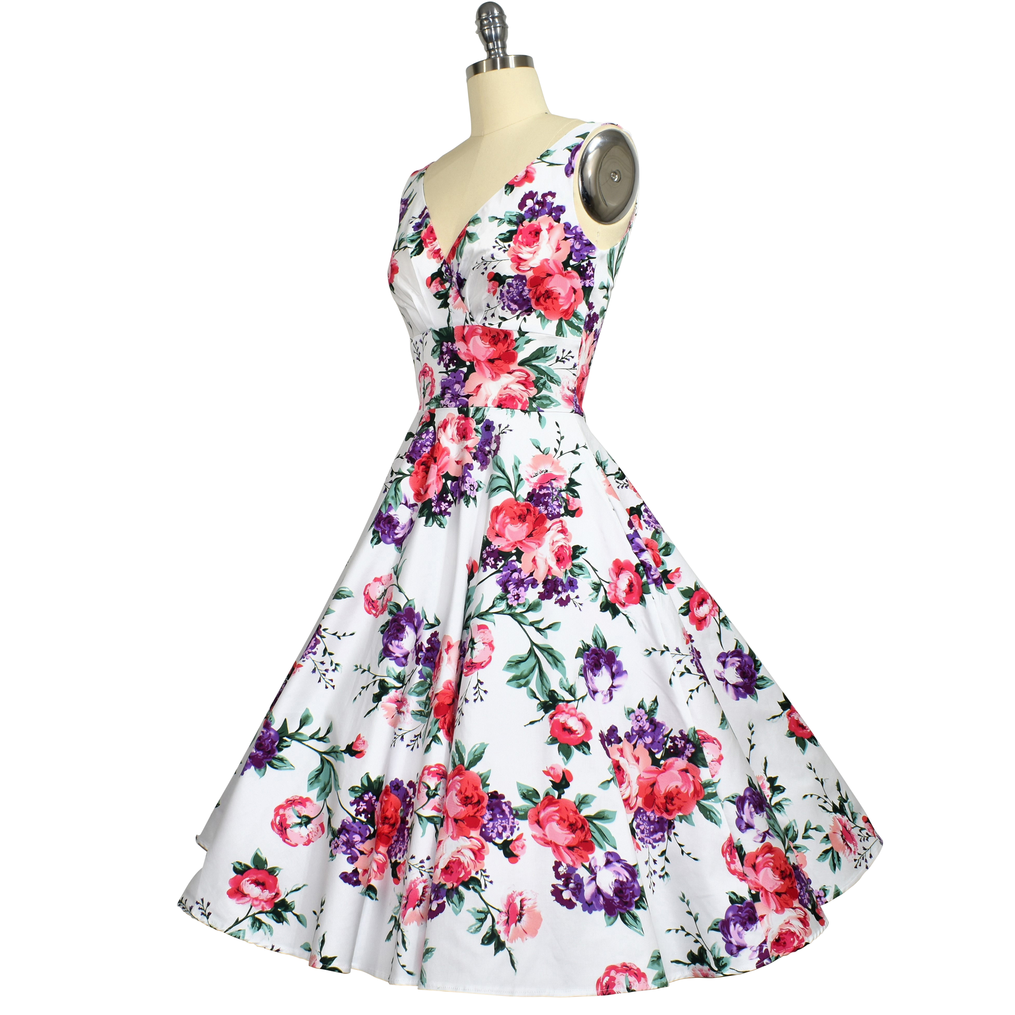 Fifties vintage-style dress with cross-over bodice and full 3/4 circle skirt