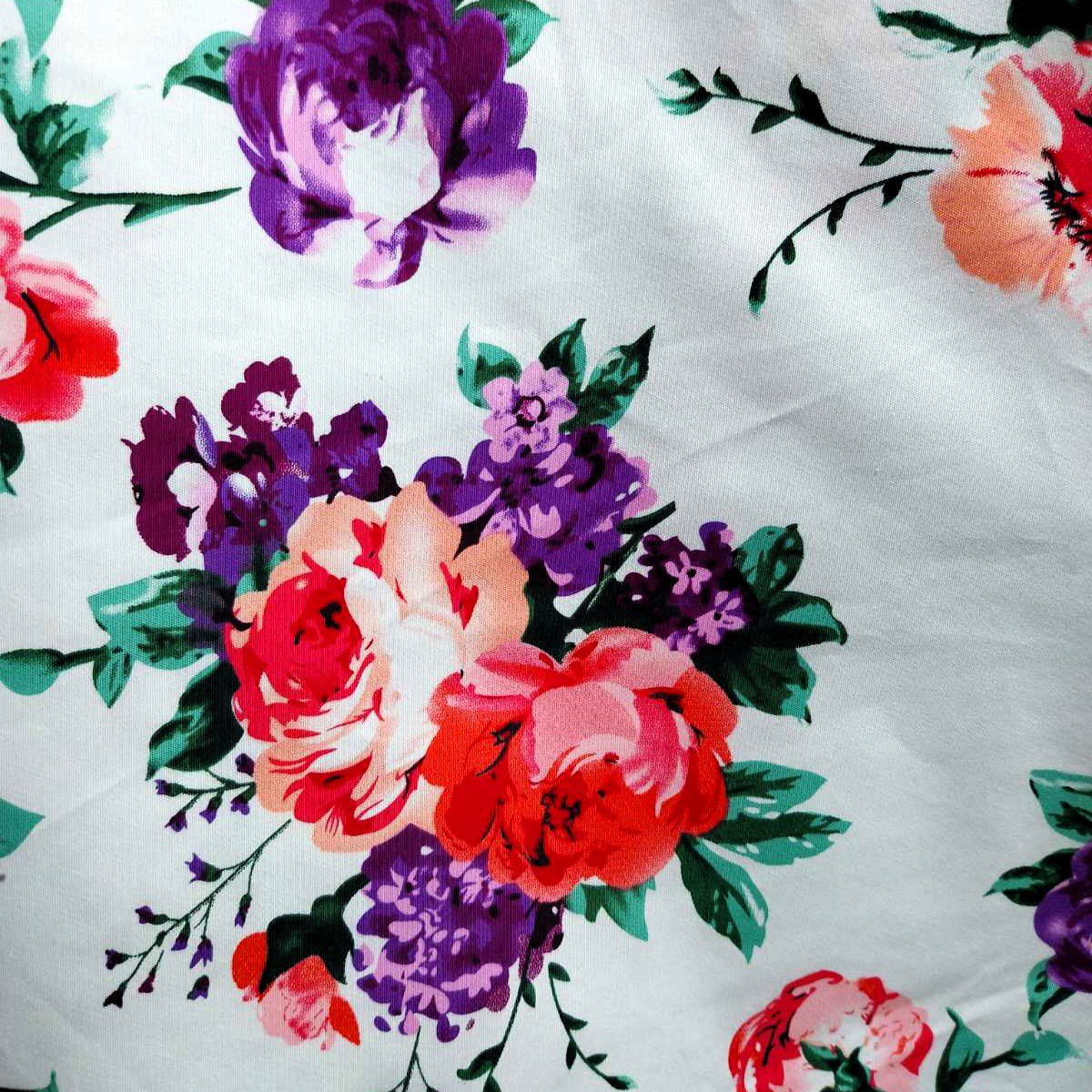 Pretty Floral in soft shades of Pink, Purple & Green on a White background