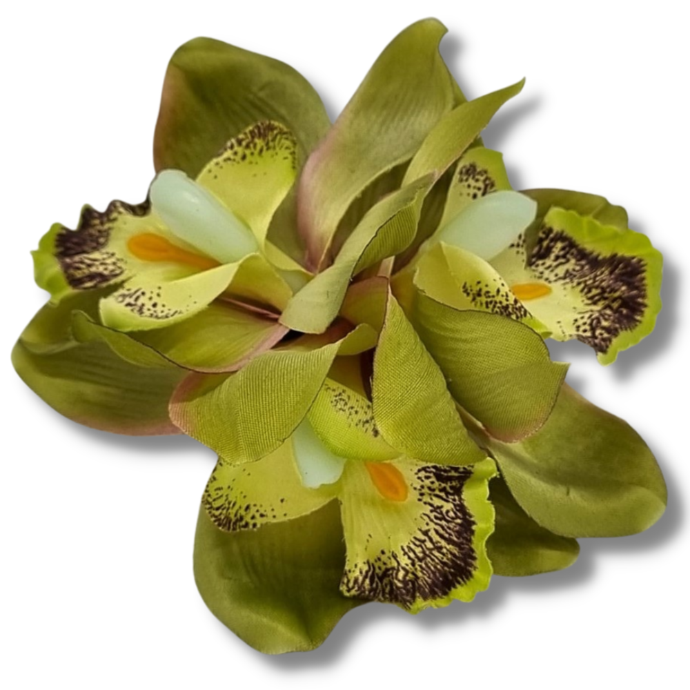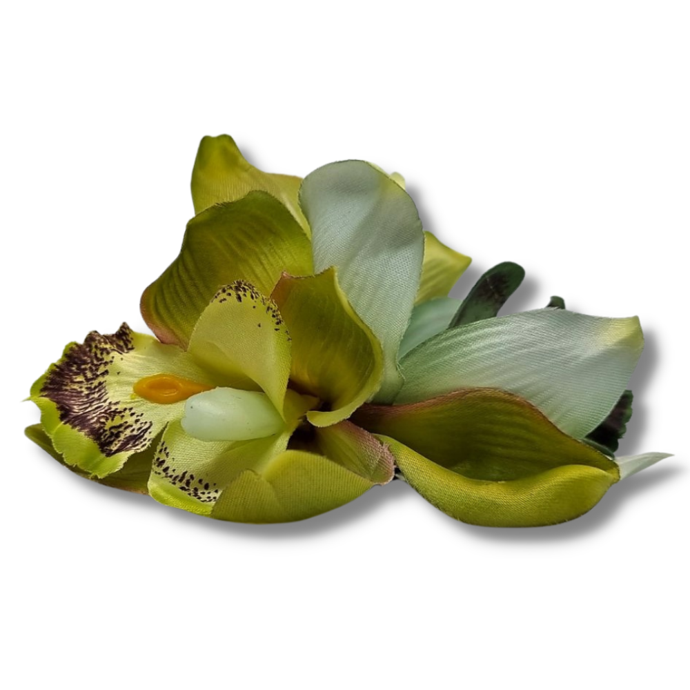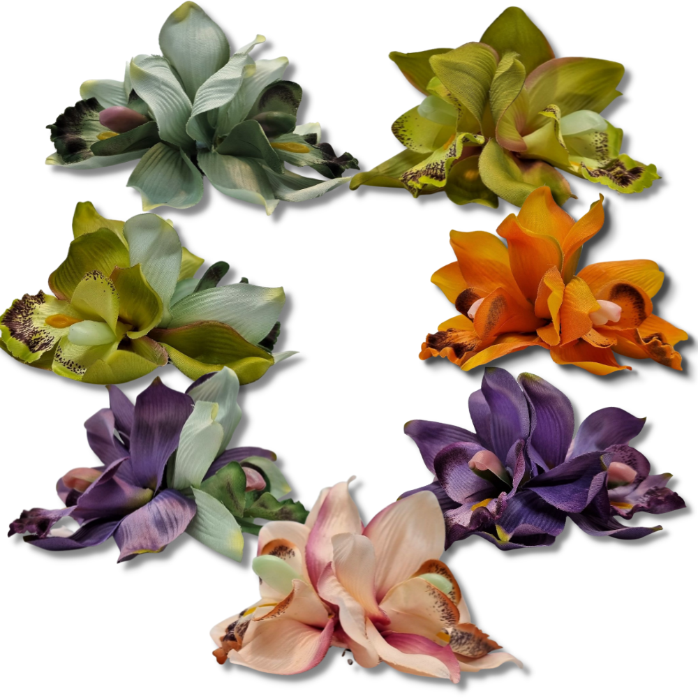 New! Stunning Triple Cymbidium Orchids add a tropical touch to your hair or wear as a corsage to complete any Vintage-style outfit