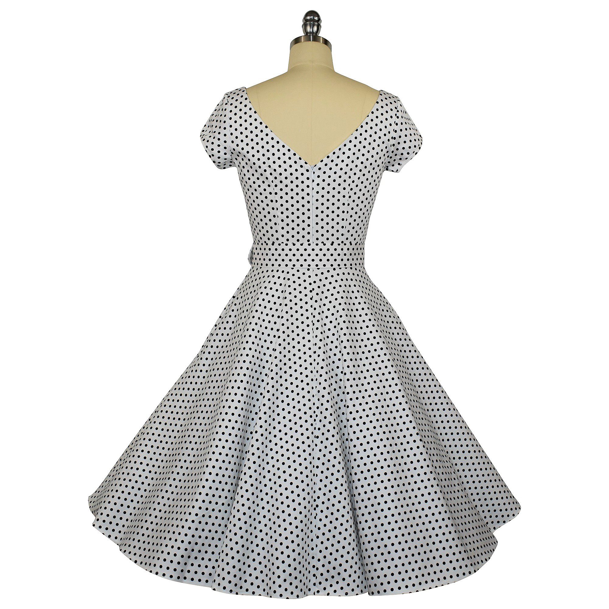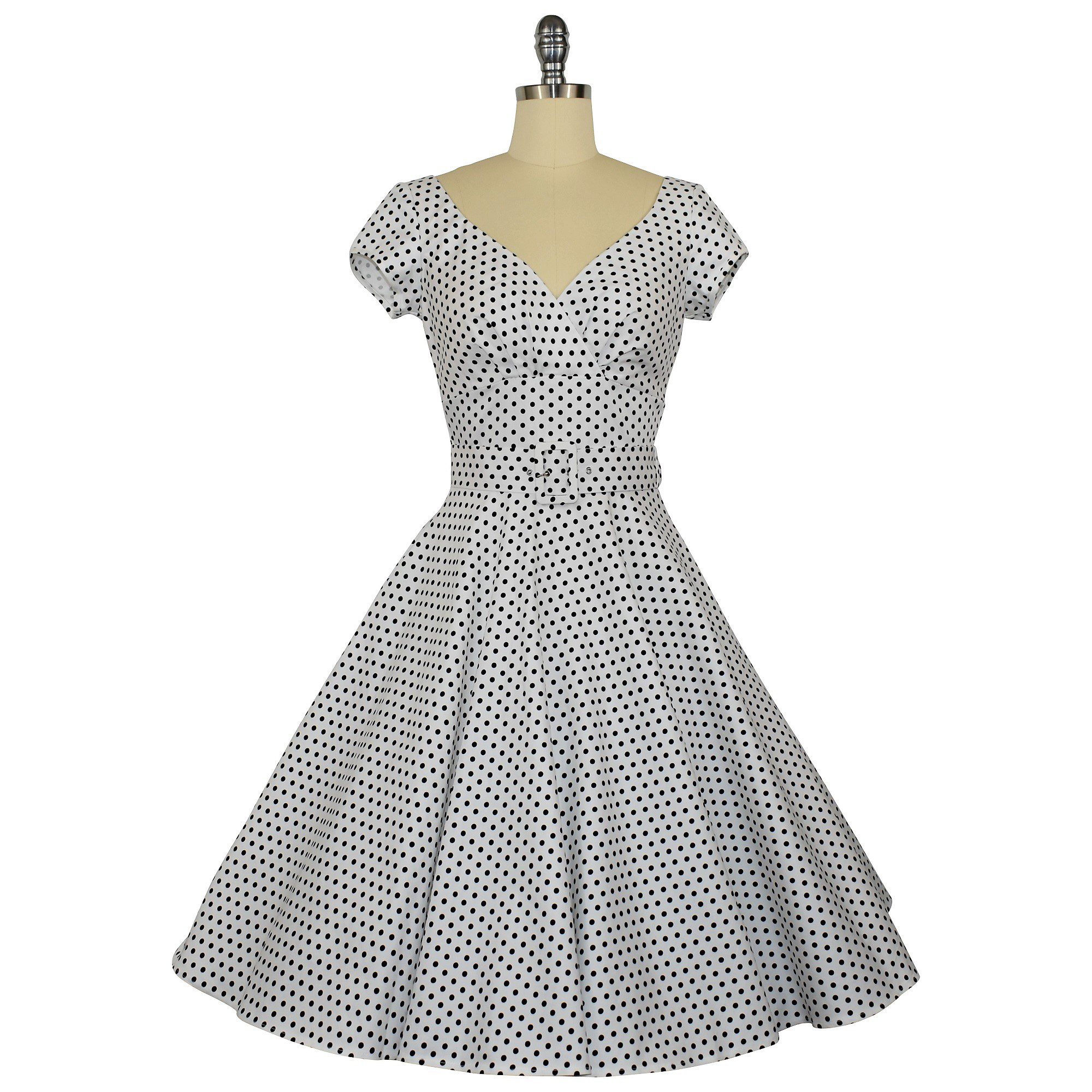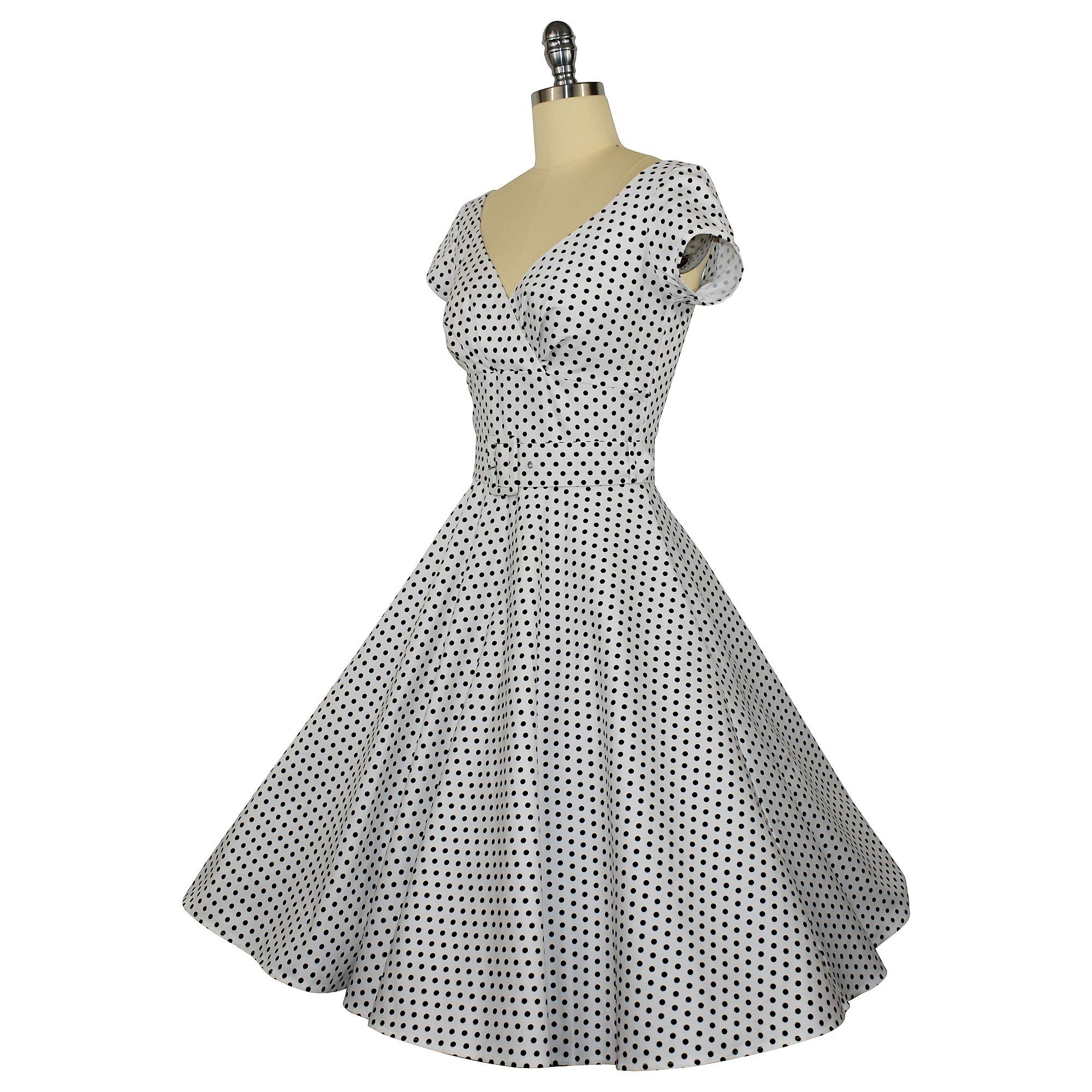 Fifties vintage-style dress with cross-over bodice and full, 3/4 circle skirt featuring concealed pockets in side seams